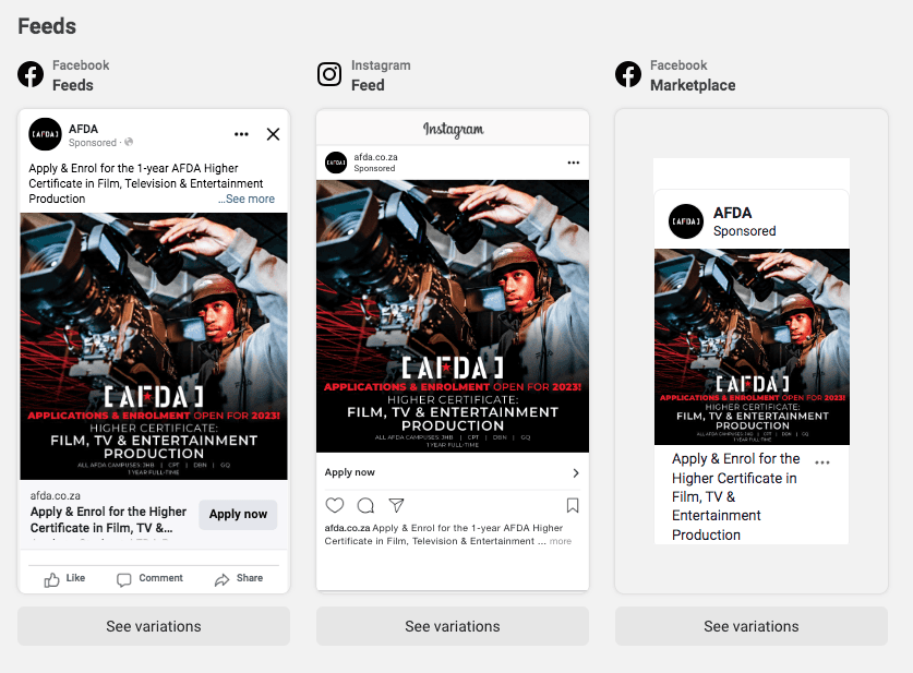 AFDA's first real commitment to digital-first marketing. Four campuses. Real budgets. KPIs tied to actual enrolments, not just likes and shares. Stakeholders who wanted results yesterday. The job: build the entire digital engine from scratch — paid media, content strategy, event coverage, funnel optimization, team coordination. Make it work across multiple campuses, multiple regions, and multiple stakeholders who all had opinions.